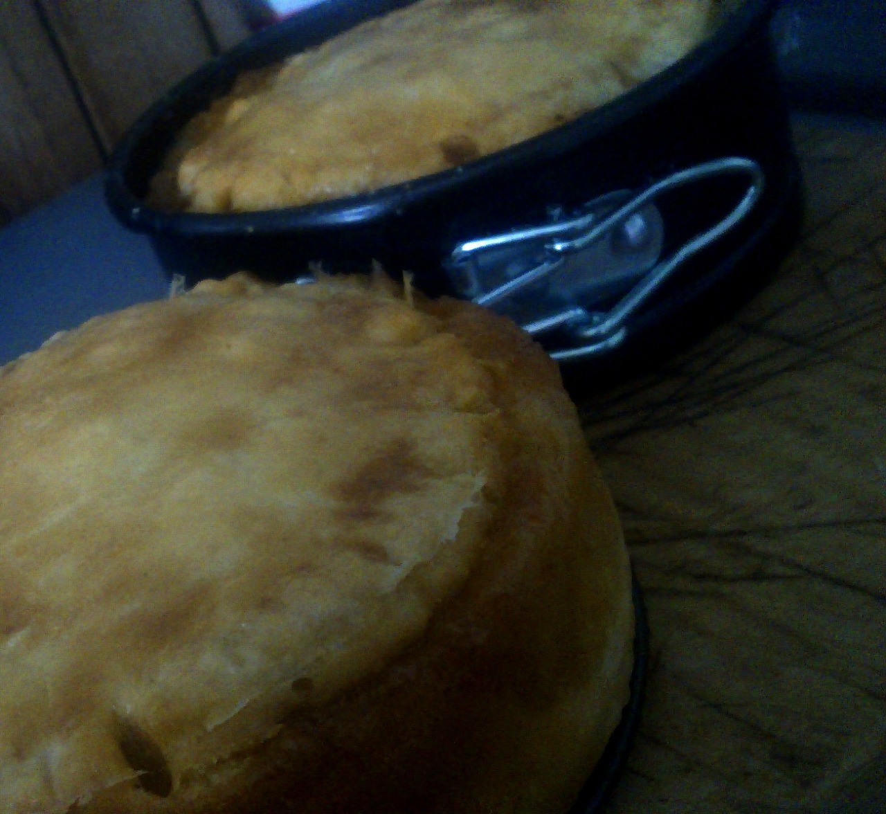 Opět se musím malinko přiznat k lenosti - na koláč by se správně mělo vypracovat křehké těsto do spodní části a nahoře ho potáhnou listovým těstem, nicméne já jsem použila na obě vrstvy těsto listové - kupované. A výsledek nebyl zrovna špatný. Nebojte, příště si dám tu práci a ozkouším koláče na základu z křehkého těsta.
